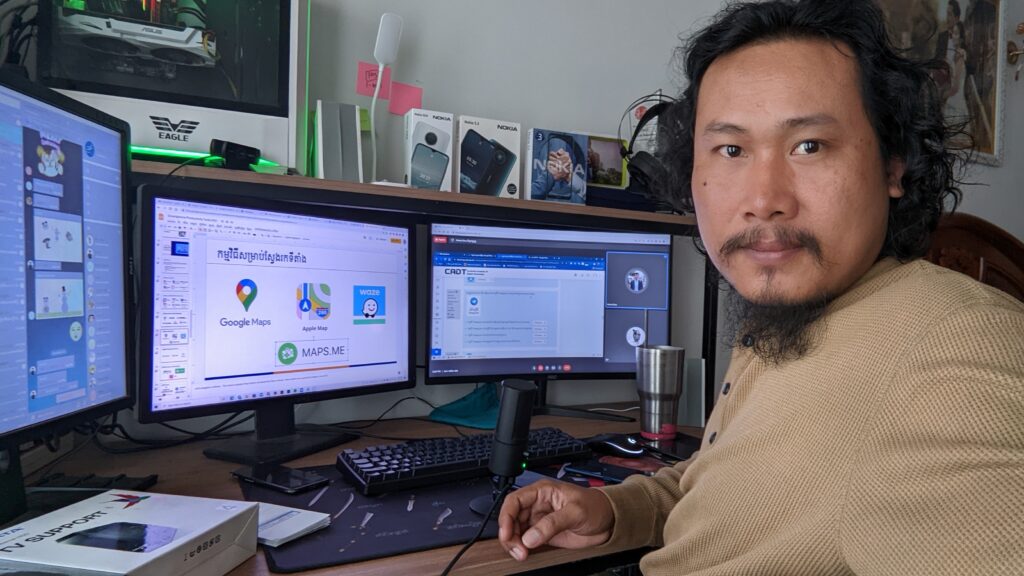 កាលពីឆ្នាំ 2010 ខ្ញុំបានស្គាល់ Google Maps ជាលើកដំបូង។ បន្ទាប់មកនៅឆ្នាំ 2011 ខ្ញុំចាប់ផ្តើមចូលរួមក្នុងកម្មវិធី Google Map Maker ដែលអនុញ្ញាតឲ្យអ្នកប្រើប្រាស់បន្ថែមទីតាំង បន្ថែមផ្លូវថ្មី ឬគូរផ្លូវថ្មីនៅលើផែនទី Google Maps។ ព្រោះខ្ញុំស្គាល់ភូមិសាស្ត្រនៅខេត្តបន្ទាយមានជ័យស្រាប់ វាធ្វើឲ្យខ្ញុំងាយស្រួលក្នុងការគូរ និងកែប្រែផែនទីនៅតំបន់នោះ។